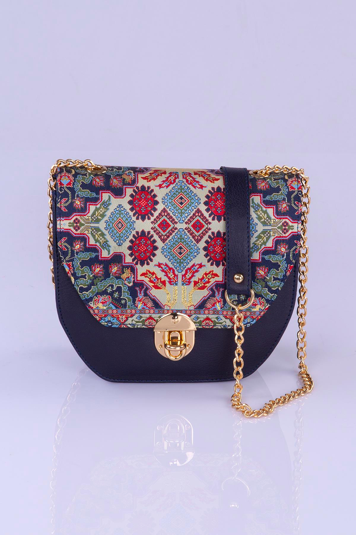 Dokuma Zincirli Deri Detaylı Kadın El Omuz Çapraz Çanta Mottif İstanbul Otantik 1022 (1022.08-738)